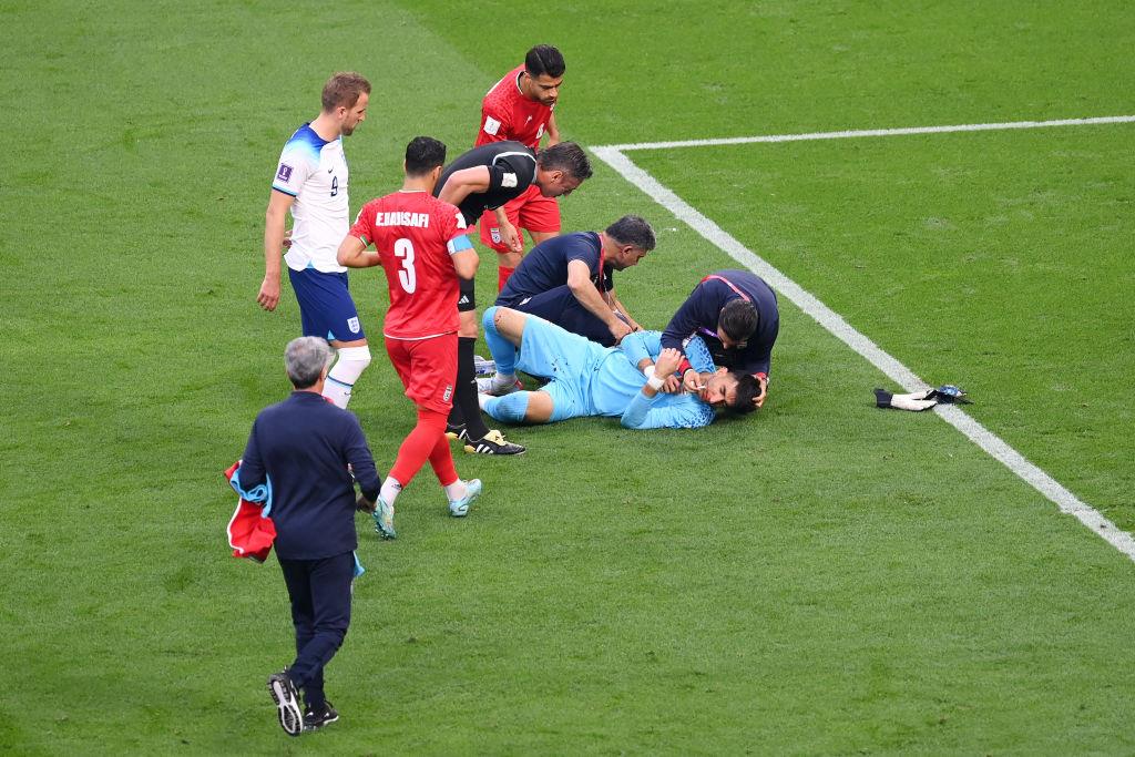 Травмованого воротаря Ірану виносять з поля, Фото Getty Images