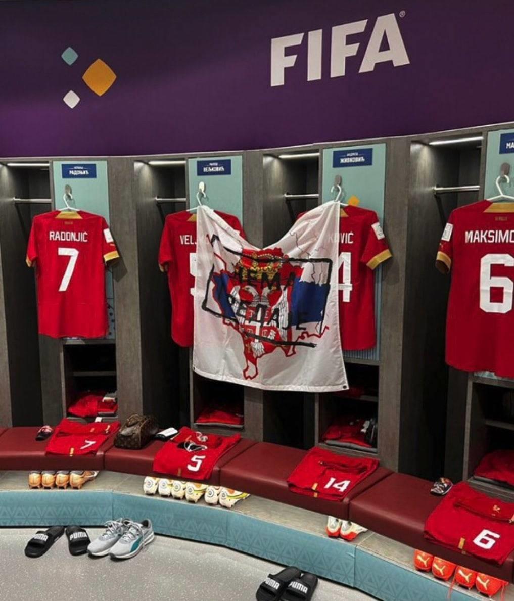 Початок чемпіонату для сербів розпочався матчем проти одного з фаворитів змагань — збірної Бразилії. Європейська збірна майже нічого не показала в атаці та заслужено програла з рахунком 0:2. Проте серби відзначились зі знаком мінус. По-перше, в роздягальні сербів був вивішений прапор, який показував Косово як частину їхньої країни. Через це дисциплінарний комітет ФІФА відкрив справу проти Футбольної асоціації Сербії.