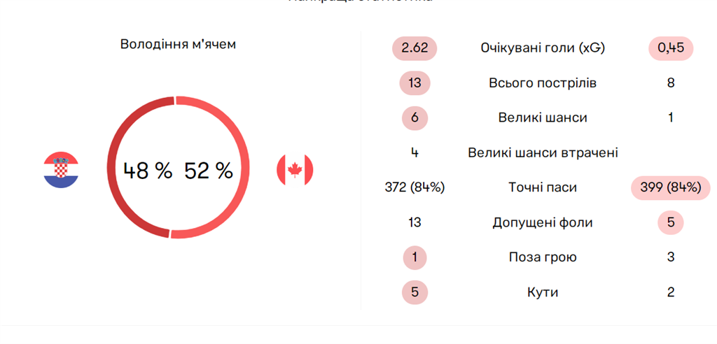 Збірна Хорватії не виглядала на стадії групового раунду домінуючою командою. Вони у двох матчах віддали ініціативу суперникам. Мова йде про ігри проти Бельгії та Марокко. І лише у одному — проти Канади, продемонстрували увесь свій прихований потенціал, відгрузивши у ворота Мілана Боряна чотири голи.