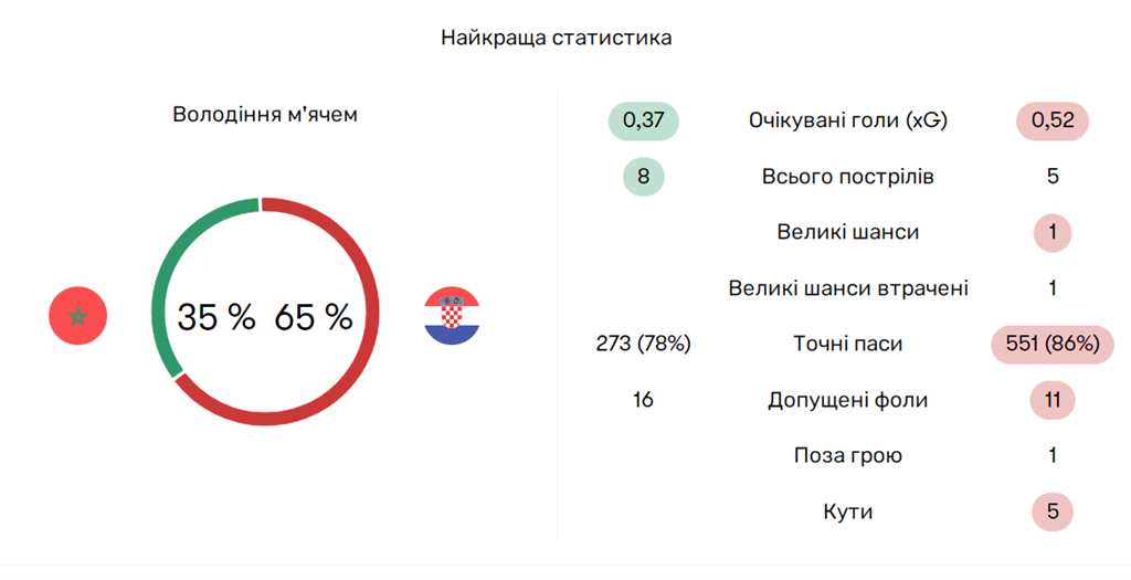 Збірна Хорватії, мабуть, очікувано вийшла у плей-оф раунд ЧС-2022. Навіть місце у таблиці цієї збірної ми вгадали — 2. Збірна Хорватії дав рази на цьому мундіалі зіграла внічию, і обидва рази з рахунком 0:0. І один раз команда обіграла суперника.