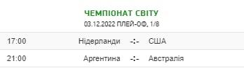 У рамках 1/8 фіналу чемпіонату світу-2022 зігратимуть два поєдинки у двох слотах: 17:00 та 21:00.