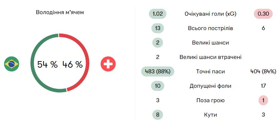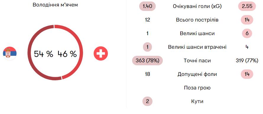 Швейцарія є досить закритою командою, яка любить повозитися з м'ячем, але не більше, ніж суперник. У всіх трьох матчах її показник володіння м'ячем був близьким до 50%.