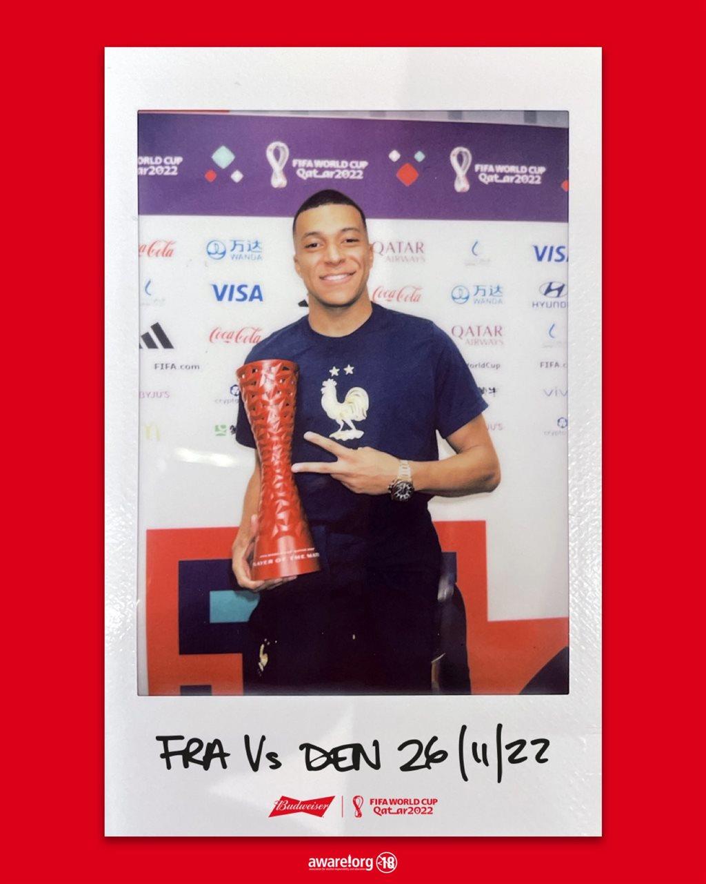У матчах групового етапу ЧС-2022 Франція — Австралія та Данія — Франція найкращим признали форварда Кіліана Мбаппе.