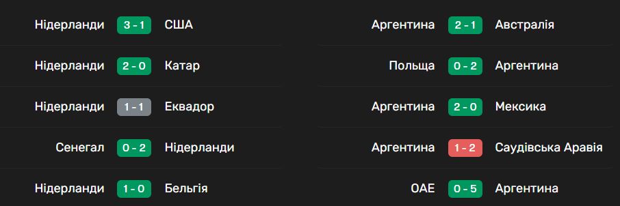 В складі збірної Аргентини протягом турніру розкриваються нападник Альварес та півзахисник Фернандес, яких ми очікуємо в стартовому складі на цю гру. На жаль, зрозуміло, що тренерський штаб не робить ставку на Лісандро Мартінеса, хоча він би не завадив у протидії рухливій групі атаки нідерландців.