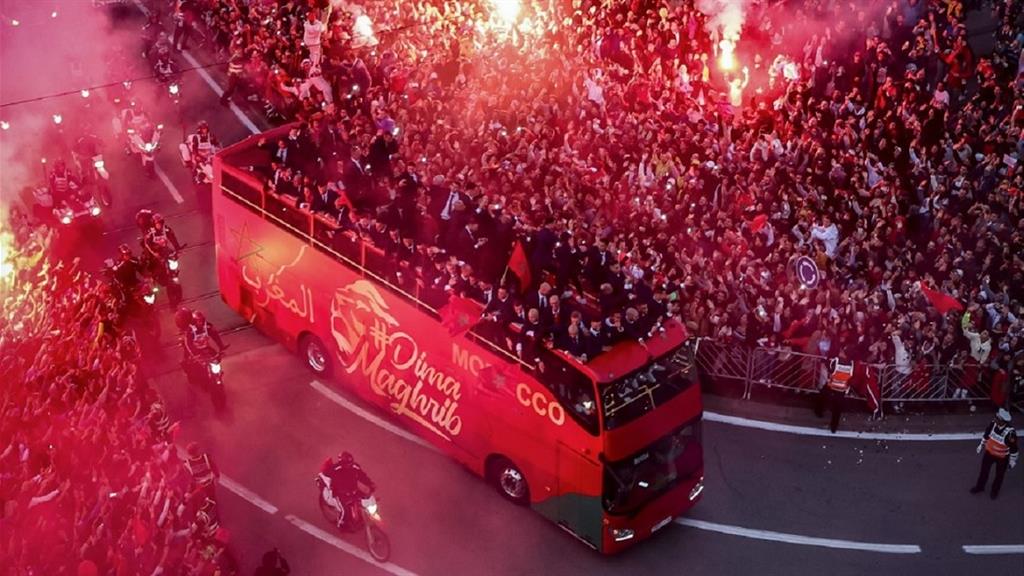 У Рабаті вболівальники заповнили площі та вишикувалися вздовж проспектів і вулиць, запалюючи фаєри, розмахуючи прапорами, танцюючи під барабани.
