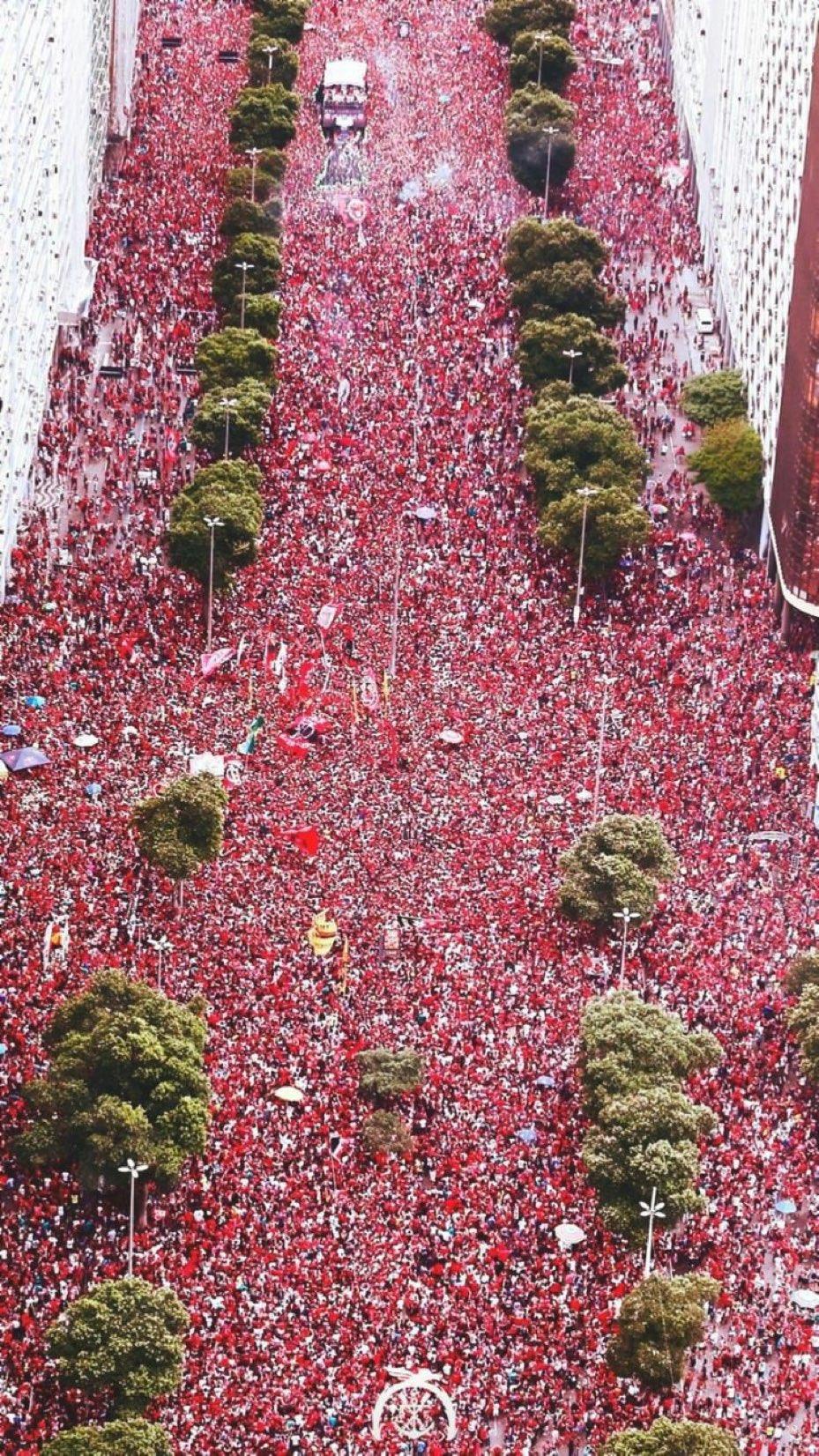 Під поліцейський супровід футболісти в автобусі з відкритим верхов, у костюмах, заїхали у місто. Вони махали, слали поцілунки своїм захопленим вболівальникам і робили селфі.