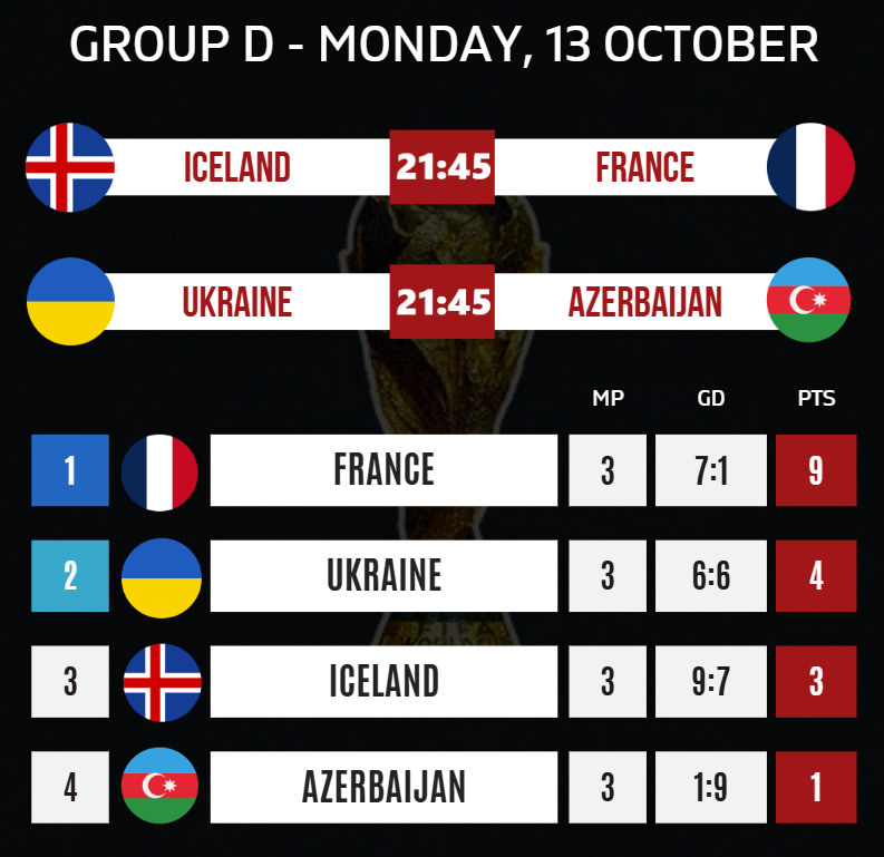 Франція зміцнює лідерство у групі, де виступає збірна України.