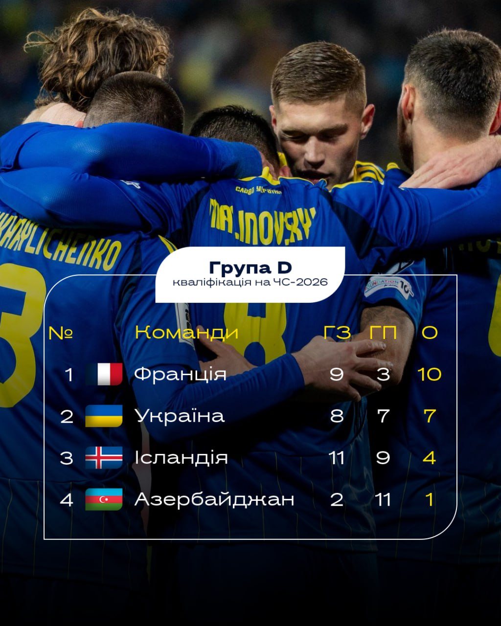 Франція втратила очки у групі, де виступає збірна України — за підсумками четвертого туру маємо наступну ситуацію в нашій групі: