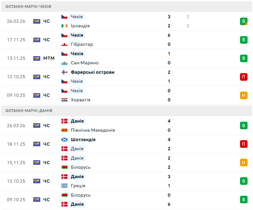 У рамках фіналу плейоф кваліфікації чемпіонату світу-2026 збірна Данії гостюватиме в чеської національної команди.