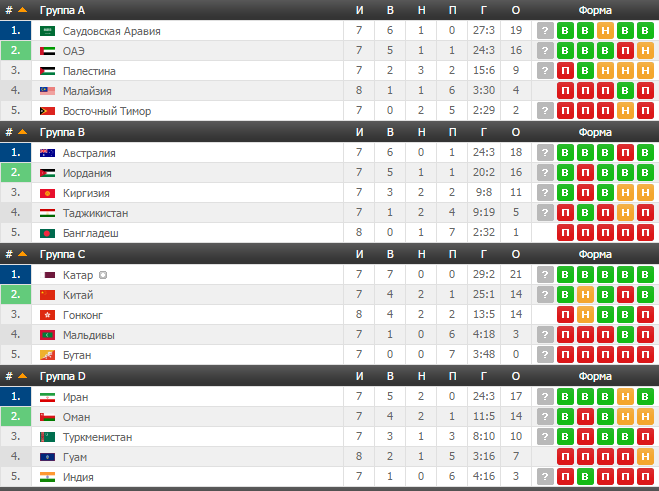 В Азии состоялось несколько поединков второго этапа квалификации на ЧМ-2018.