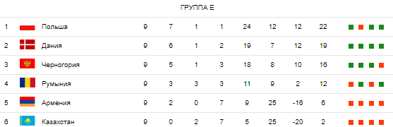 В группе Е в десятом туре лишь матч Казахстан — Армения будет лишен какой-либо смысловой нагрузки. А вот в поединках Дания — Румыния и Польша — Черногория определятся хозяин прямой путевки на ЧМ-2018 и участник плей-офф.