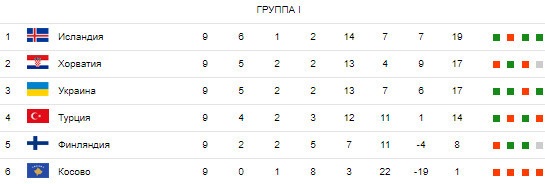 Исландия выиграла все четыре матча отбора дома, причем лишь с Финляндией имело место какое-то развеселое настроение, приведшее к пяти забитым мячам в те и другие ворота — 3:2. А вот все конкуренты, Хорватия, Украина и Турция были обыграны всухую и практически без вариантов.
