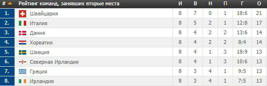 Восемь команд, которые заняли вторые места в своих группах, получили возможность принять участие в стыковых поединках за право сыграть на футбольных полях России грядущим летом.