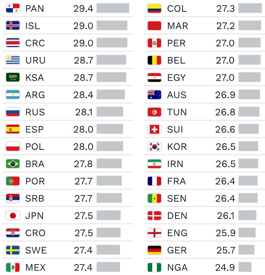 Отметим, что самые возрастные сборные – североамериканские Панама и Коста-Рика, а также бывшие соперники сборной Украины исландцы.