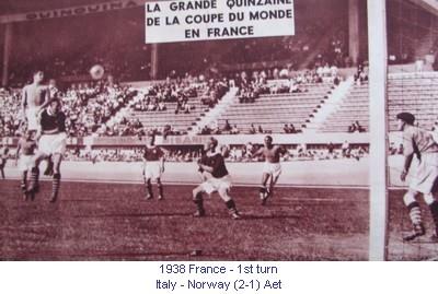 Все розпочалося для Скуадри Адзурри – краще не придумаєш. Вже на другій хвилині воротар норвежців спіймав метелика. Після цього італійці вирішили спокійно втримати перевагу. Однак норвежці не збиралися капітулювати. В подальшому на полі була лише одна команда, і це була зовсім не Скуадра Адзурра. Традиційно непрохідна італійська оборона взяла відгул цього дня. Особливо дісталося Мондзельо, якого періодично виставляли на посміховисько Брустад і Брюнільдсен. Італійці з останніх сил відбивалися та мали пропускати не раз і не два. Проте абсолютно геніальний матч видав голкіпер Олів’єрі, який, навіть граючи з травмою, тягнув все. А коли він вже не міг нічим допомогти, його кращі друзі – штанги ставали на заваді вікінгам. Лише на 83-й хвилині Брустаду вдалося відновити статус-кво. І буквально в наступній атаці він же вдруге змушує Олів’єрі витягувати м’яча з сітки власних воріт. Скромний норвезький форвард міг увійти в історію, як футболіст, котрий завдав нокаутуючих ударів двом фашистським диктаторам. Але на допомогу дуче прийшов екс-австрійський, а віднедавна німецький суддя Беранек, який в цьому епізоді вгледів офсайд. Італійські футбольні історики, як правило, делікатно оминають даний момент та пишуть щось на кшталт: «Слава Богу, суддя свиснув офсайд». Проте таке рішення арбітра не загасило атакуючий запал норвежців. На 89-й хвилині Брюнільдсен вискочив тет-а-тет з голкіпером. В Поццо ледь не зупинилося серце. Він чудово розумів, що на нього чекає вдома в разі поразки, а тим більше в першому ж матчі. І від кого? Від футбольного карлика. На жаль, цього разу Голіаф встояв – Олів’єрі впорався з ударом Брюнільдсена. А в додатковий час гол безжального Сільвіо Піоли закінчив норвезьку казку.