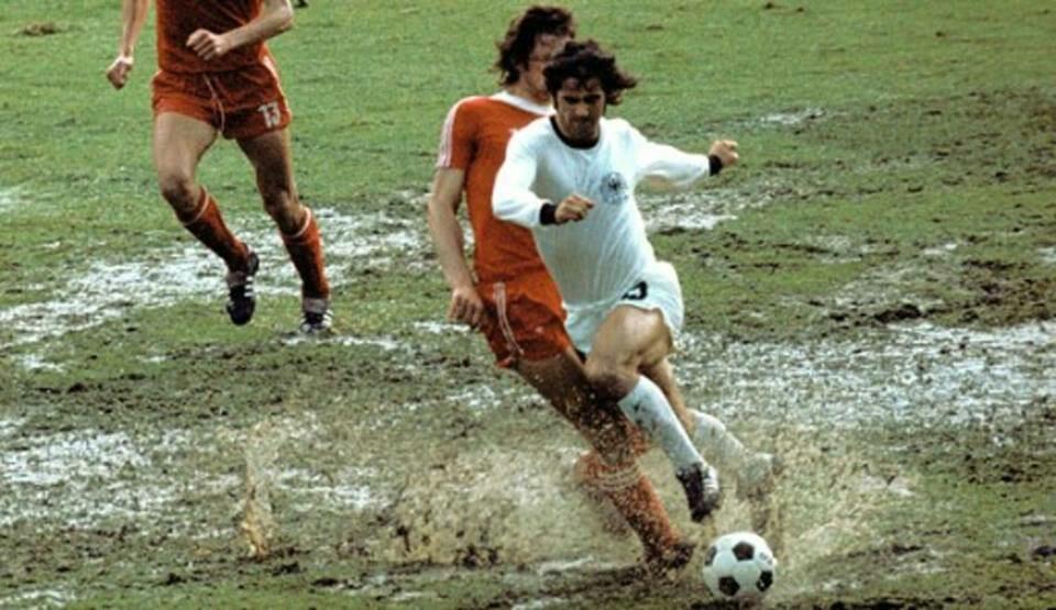 Нескенс без надзусиль виконав вирок. Німці перебували в стані грогги, а нідерландці замість того, щоб добити розгублених господарів почали гратися з ними в кішки-мишки. Це була одна з найбільших помилок в історії помаранчевого футболу. «Ми дуже хотіли зробити з німців паяців. Ми намагалися тримати м’яч в себе і просто пасували його одне одному. В німців нічого не виходило, вони почали злитися та нервувати. Єдине, що ми забули зробити – це забити другий гол», – розчаровано згадував Джонні Реп. В середині першого тайму Гельценбайн продерся крізь нідерландський захист, де на його шляху трапилася нога Віма Янсена. «Гельценбайн прекрасно знав, що слід робити в подібних ситуаціях. Він зачепився за ногу голландця та впав, наче підкошений. Це була коронка Бернда. За якийсь місяць до цього Гельценбайн так само симулював в півфіналі Кубка Німеччини, що дозволило Айнтрахту вибити Баварію», – пише Улі Гессе. Брайтнер з одинадцятиметрової позначки не залишив Йонгблуду жодного шансу. Друга половину тайму пройшла під диктовку німців. І на 43-й хвилині Мюллер забив свій черговий кострубатий, але від того не менш цінний гол.