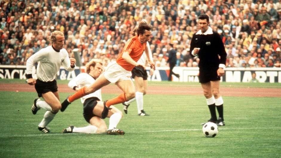 Фінал розпочався для німців гірше не придумаєш. Вже на першій хвилині Кройф втік від свого тілоохоронця Фогтса і Генессу довелося збивати летючого голландця у власному штрафному майданчику.