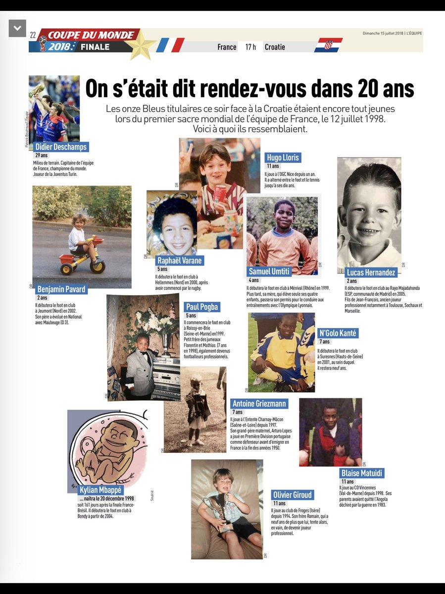 ЧМ-2018. Отбор 15 липня 2018, 12:59 Как выглядели игроки сборной Франции и в частности Мбаппе 20 лет назад — L'Equipe Французское издание опубликовало фотографии игроков национальной сборной 20 лет назад. Килиан Мбаппе, Getty Images 15 липня 2018, 12:59 Сегодня Франция сыграет в финале Чемпионата мира против Хорватии. К этому L'Equipe опубликовал фотографии игроков сборной в 1998 году, в том числе – эксклюзивное фото Килиана Мбаппе, родившегося 20 декабря 1998. Вы можете скачать изображение в полном размере в телеграм-канале Football.ua. Євген Музика всі статті автора Команди Франція Хорватія Facebook